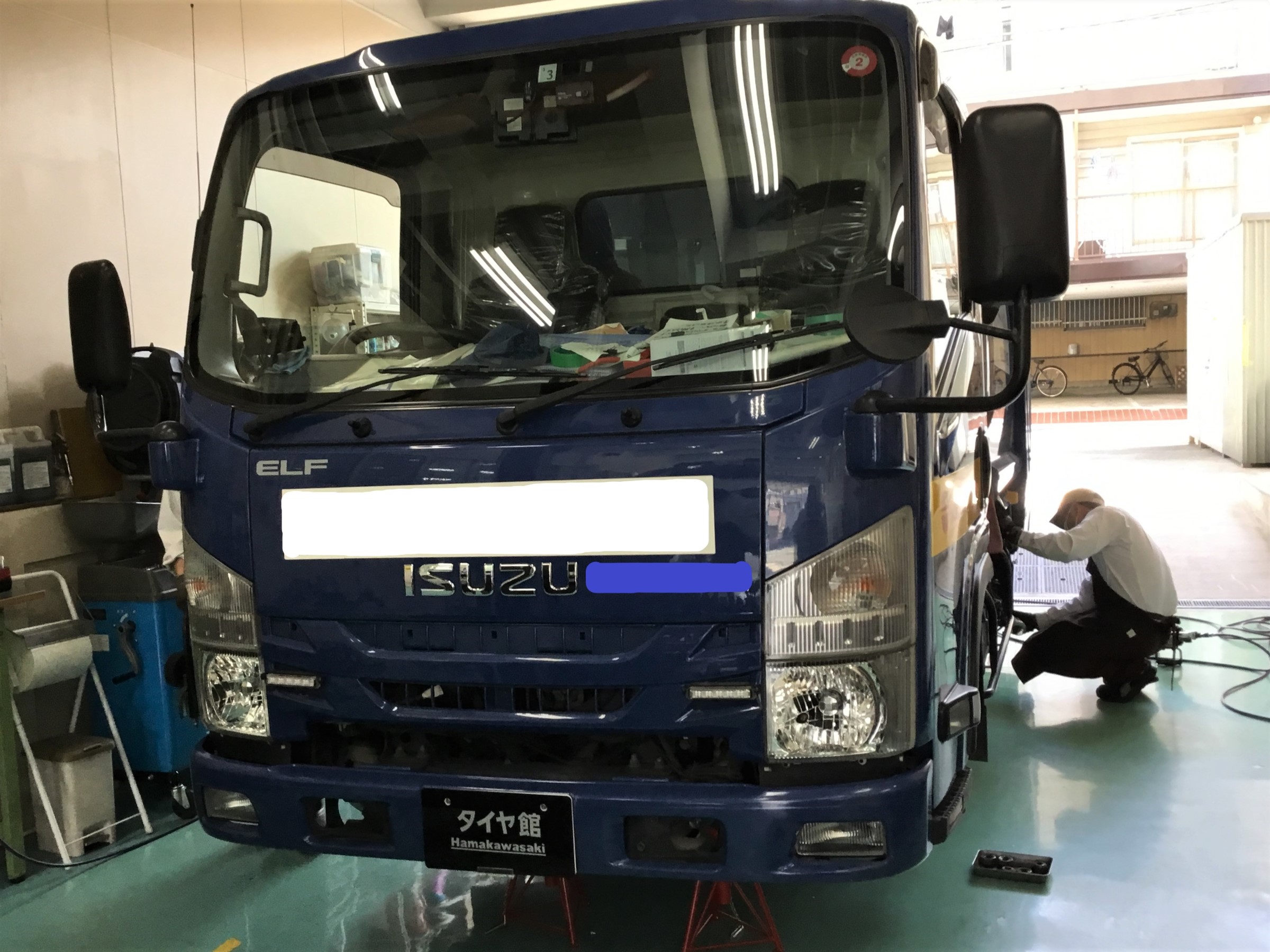 いすゞ エルフ タイヤ交換 いすず エルフ タイヤ タイヤ ホイール関連 タイヤ ホイール交換 サービス事例 タイヤ館 浜川崎 タイヤからはじまる トータルカーメンテナンス タイヤ館グループ